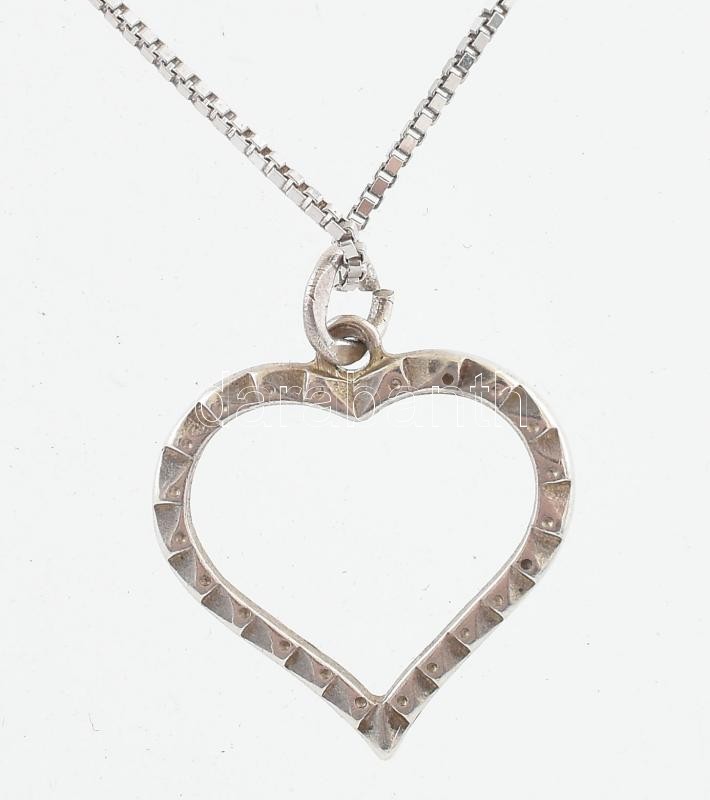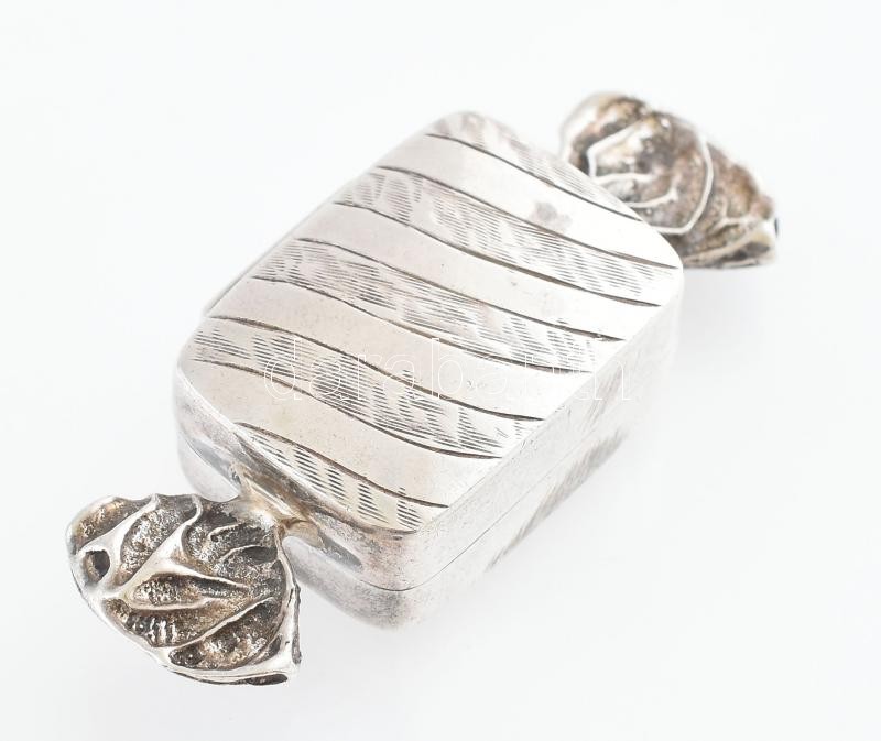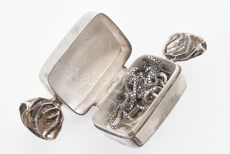 Leírás: Ezüst (Ag) cukorka formájú szelence, benne szív medálos ezüst nyaklánc, 51x22 mm, össz. 16 g