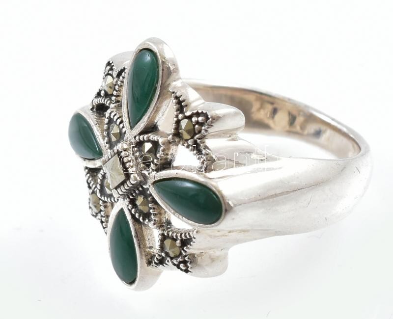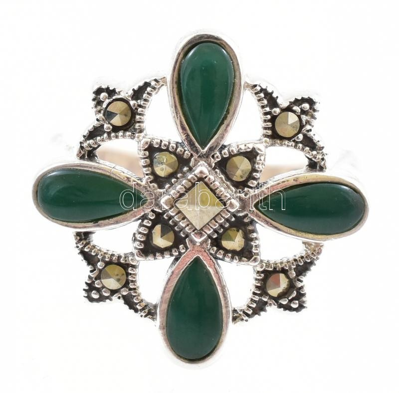 Leírás: Ezüst(Ag) gyűrű markazittal és zöld kővel, jelzett, méret: 54, bruttó: 7,4 g