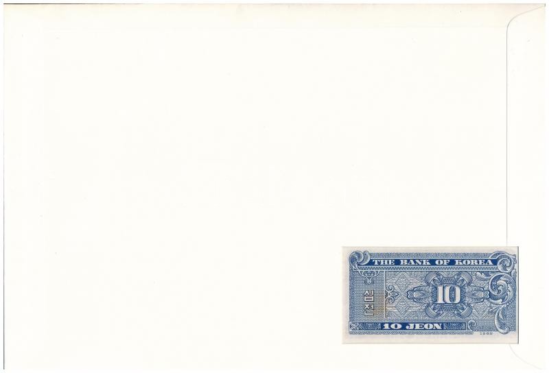 South Korea 1962. 10 Jeon in envelope with stamp and cancellation C:UNC