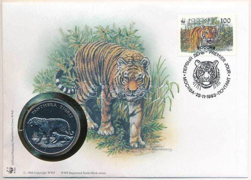 Oroszország DN (1991) "A Világ Vadvédelmi Alap (WWF) 30. évfordulója - Panthera Tigris (Tigris)" kétoldalas fém emlékérem érmés borítékban, bélyeggel és bélyegzéssel, német nyelvű ismertetővel T:PP