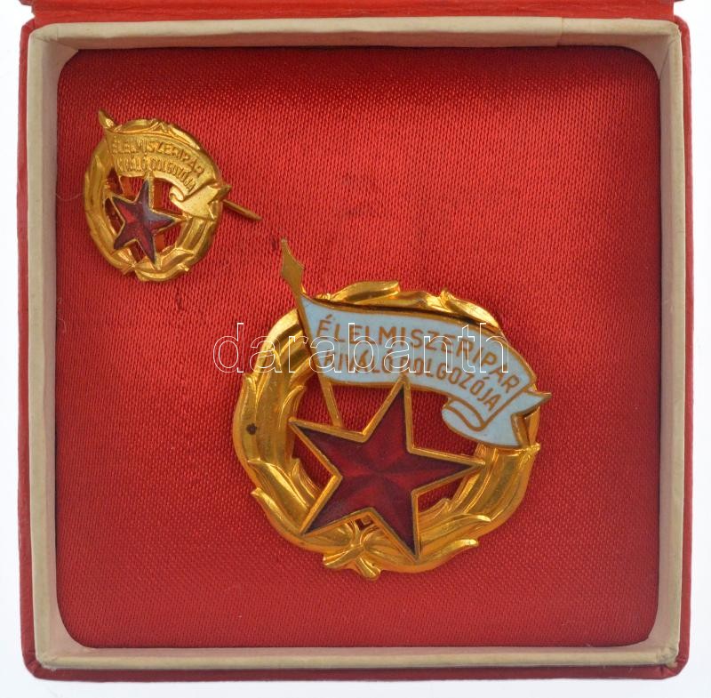 Leírás: ~1960-1970. "Élelmiszeripar Kiváló Dolgozója" aranyozott, zománcozott fém kitüntetés, miniatűrrel, dísztokban T:1-,2
