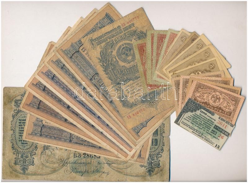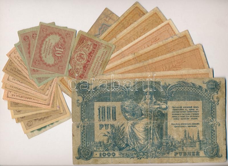 23db-os vegyes orosz, szovjet bankjegy tétel, közte Orosz Polgárháború / Dél-Oroszország / Gyenyikin és Vrangel hadserege 1919. 1000R mozaik vízjel T:II-III-