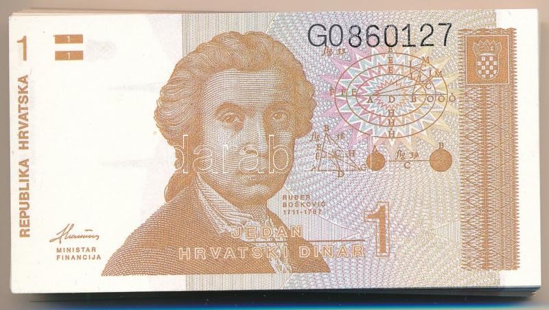 Leírás: Horvátország 1991. 1D (100x) közte sorszámkövetők T:I,I- Croatia 1991. 1 Dinar (100x) within consecutive serials C:UNC,AU Krause P#16