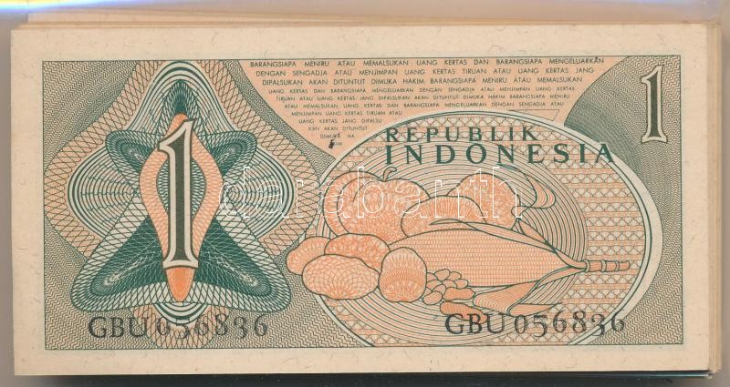 Leírás: Indonézia 1961. 1R (85x) közte sorszámkövetők T:I-II Indonesia 1961. 1 Rupiah (85x) within consecutive serials C:UNC-XF Krause P#78