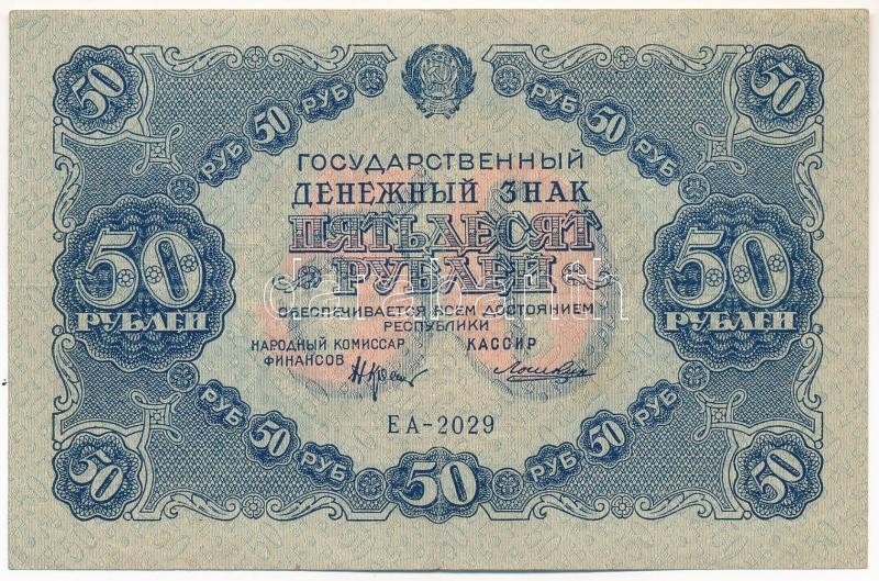 Soviet Union / Socialist Federated Soviet Republic 1922. 50 Rubles "EA-2029" C:F tiny tear