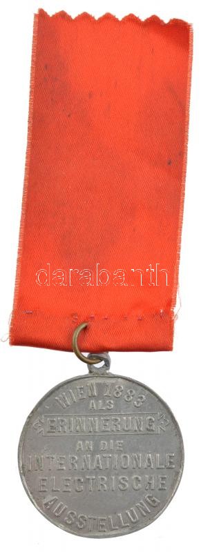 Ausztria 1883. "Emlékül az 1883-as Nemzetközi Elektromos Kiállításra" Al emlékérem mellszalagon (34mm) T:2