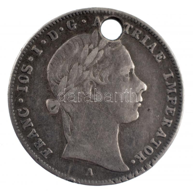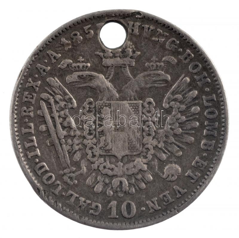 Austria 1855A 10 Kreuzer Ag "Franz Joseph" C:VF holed, patina
