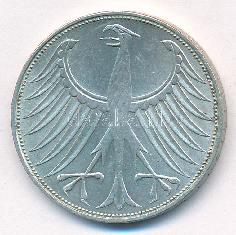 GFR 1973D 5 Mark Ag C:XF small patina... https://www.darabanth.com/hu/427-Gyorsarveres/427.0/Numizmatika/Kulfoldi-fem-es-ezustpenzek~2000015/NSZK-1973D-5M-Ag-T2-kis-patina-GFR-1973D-5-Mark-Ag-CXF-small-patina-Krause-KM23112~II2726916