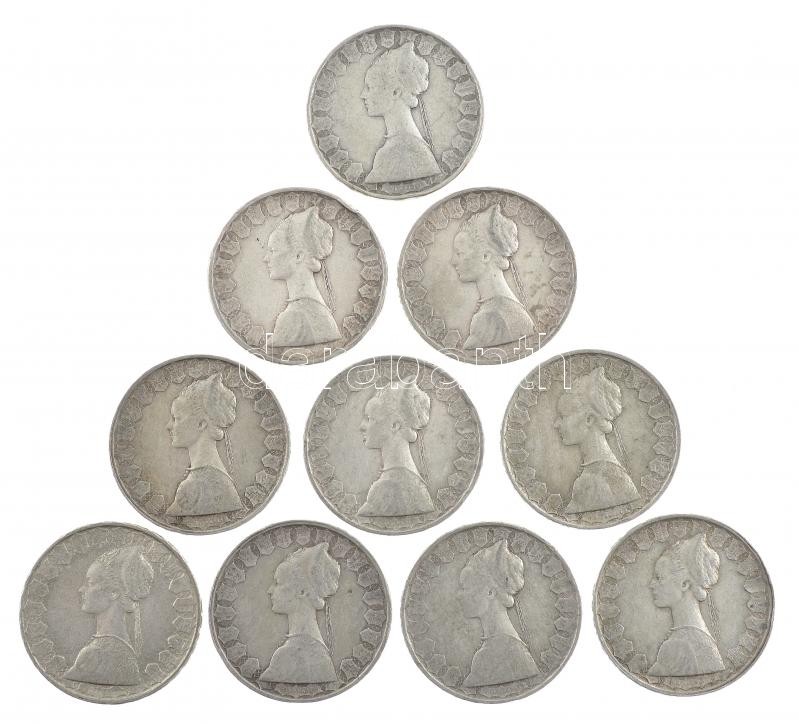 Leírás: Olaszország 1958R-1964R 500L Ag "Kolumbusz hajói" (10x) T:2-,3 patina