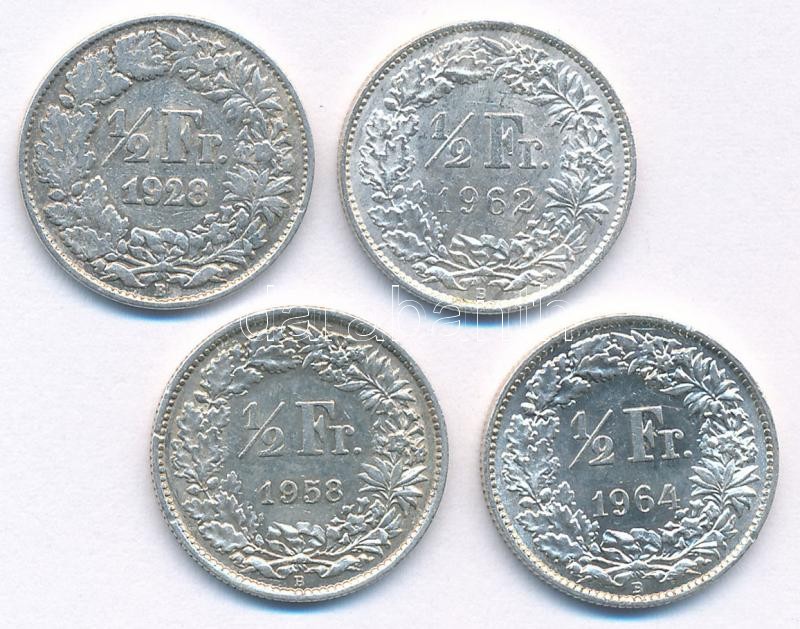 Leírás: Svájc 1928-1964. 1/2Fr Ag (4xklf) T:2,2- patina