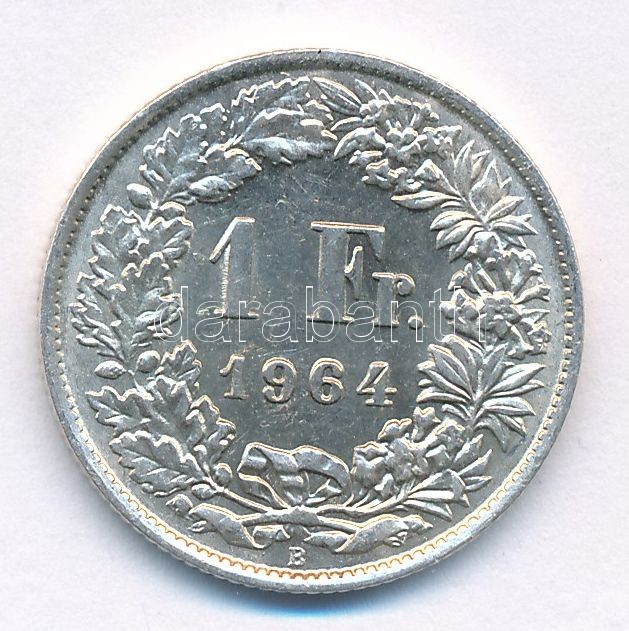 Svájc 1964B 1Fr Ag T:1- Switzerland 1964B 1 Franc Ag C:AU Krause KM#24 https://www.darabanth.com/hu/427-Gyorsarveres/427.0/Numizmatika/Kulfoldi-fem-es-ezustpenzek~2000015/Svajc-1964B-1Fr-Ag-T1-Switzerland-1964B-1-Franc-Ag-CAU-Krause-KM2324~II2734674