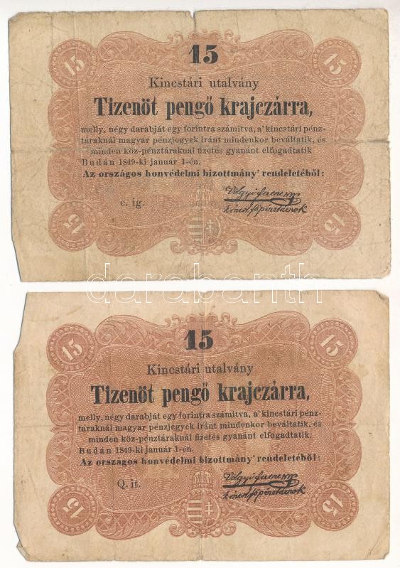 Leírás: 1849. 15kr "Kossuth bankó" (2x) T:III,III- Adamo G102