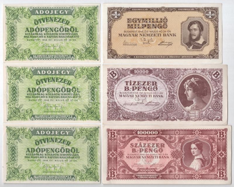 1946. 1.000.000MP + 10.000.000BP + 1946. 100.000.000BP + 50.000AP (3x)... https://www.darabanth.com/hu/427-Gyorsarveres/427.0/Numizmatika/Magyar-bankjegyek~2000007/1946-1000000MP-plus-10000000BP-plus-1946-100000000BP-plus-50000AP-3x-TI-II-~II2724744