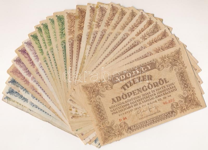1946. 10.000AP - 10.000.000AP (25x) T:III,III- https://www.darabanth.com/hu/427-Gyorsarveres/427.0/Numizmatika/Magyar-bankjegyek~2000007/1946-10000AP-10000000AP-25x-TIII-III-~II2726144