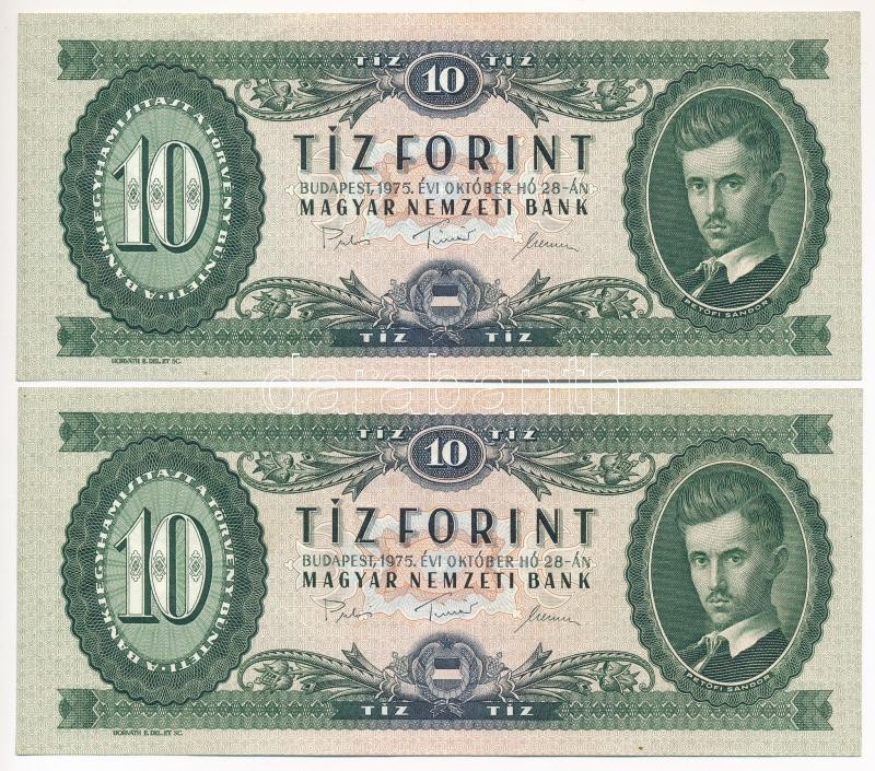 Leírás: 1969. 10Ft (2x) sorszámkövetők "A 116 116884 - A 116 116885" T:III szép papír