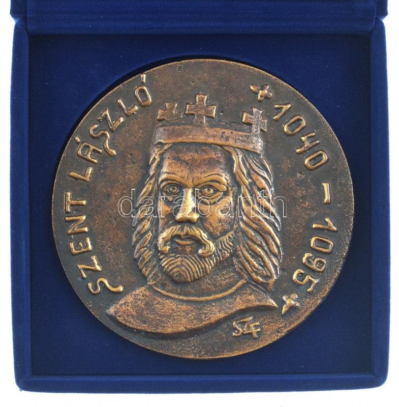 Leírás: DN "Szent László 1040 - 1095" egyoldalas, öntött bronz plakett, dísztokban. Szign.: SZF (98mm) T:1-