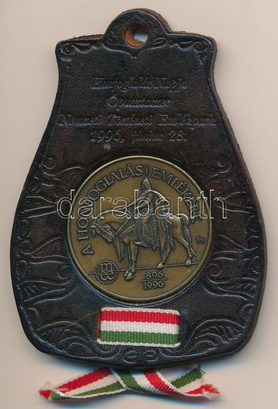 Leírás: Fritz Mihály (1947-) 1996. "A Honfoglalás emlékére 896-1896 / Árpád nagyfejedelem" bronz emlékérem bőr dísztokban (42,5mm) T:1-