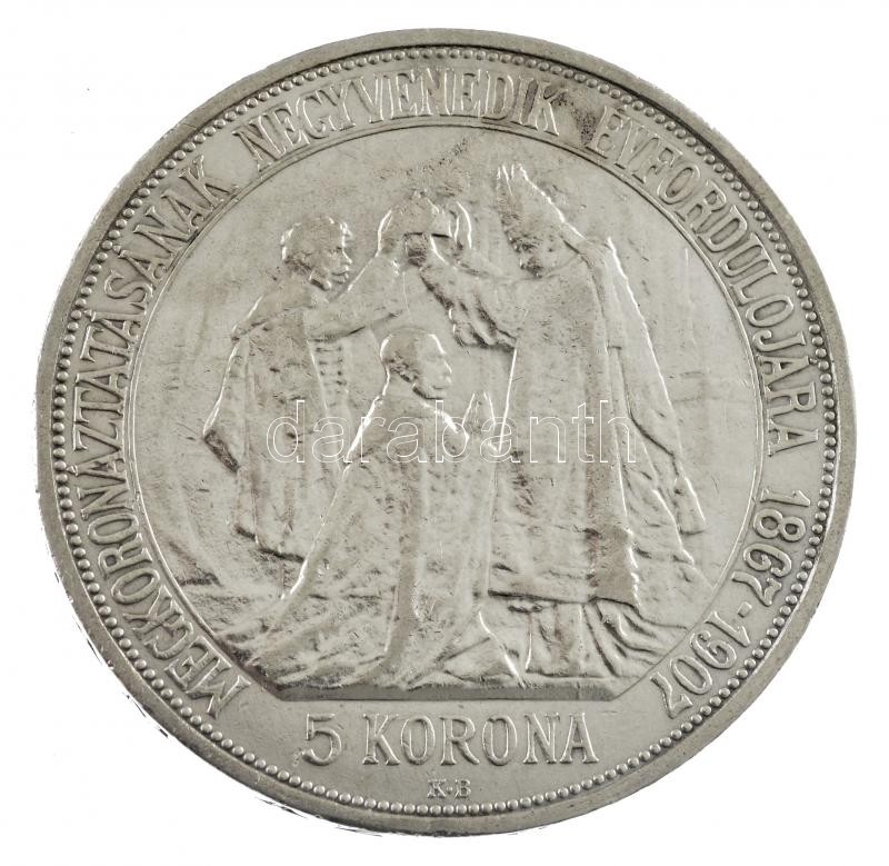 Leírás: 1907KB 5K Ag "Ferenc József megkoronázásának 40. évfordulója" T:2