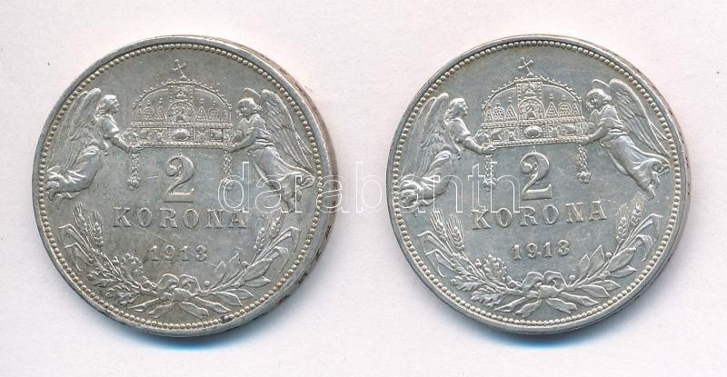 Leírás: 1913KB 2K Ag "Ferenc József" (2x) T:1-,2 egyiken patina