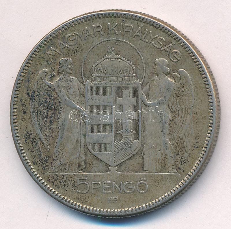 Leírás: 1930. 5P Ag "Horthy jobbra" T:2- patina Adamo P8