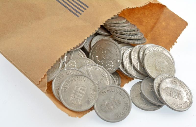 Leírás: 1941-1944. 1P Al (100db) "Országos Takarékbank - 100 Forint, 50 darab 2 Forintos" papírzacskóban, a zacskó bélyegzés nélkül T:3 oxidáció, porózus Adamo P6.1