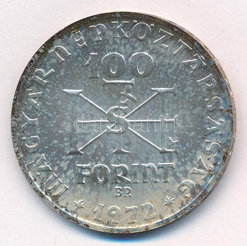 1972. 100Ft Ag "Szent István" T:1- patina