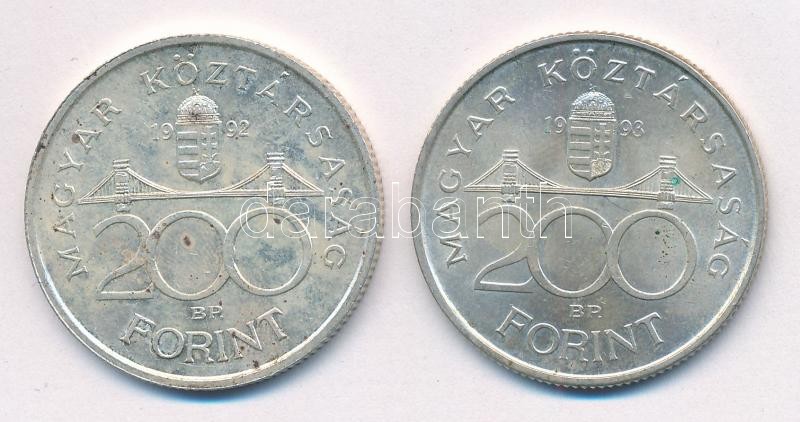 Leírás: 1992-1993. 200Ft Ag "MNB" (2xklf) T:1- patina Adamo F13