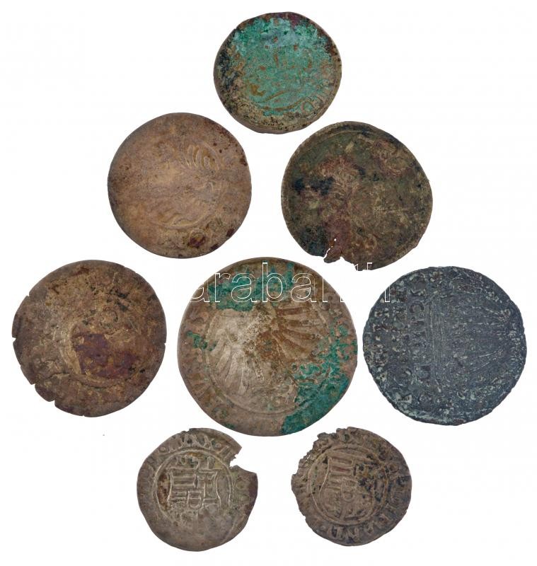 Leírás: ~1500. 8db-os vegyes magyar és külföldi ezüstérme tétel gyenge tartásban T:3,3- kitörés, patina
