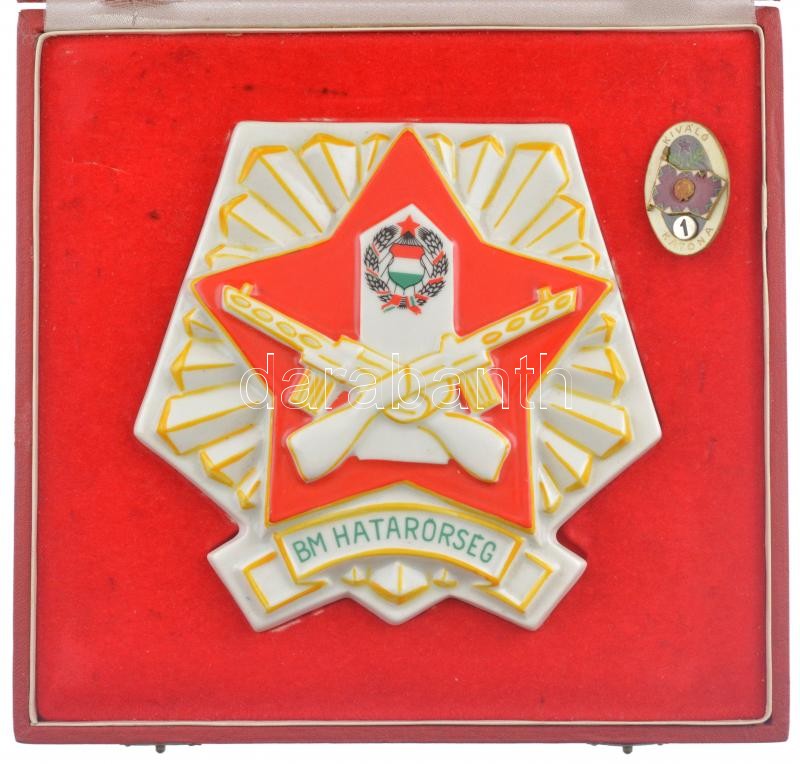 ~1970. "BM Határőrség" jelzett hollóházi porcelán plakett er... https://www.darabanth.com/hu/427-Gyorsarveres/427.0/Numizmatika/Militaria~2000018/7E1970-BM-Hatarorseg-jelzett-hollohazi-porcelan-plakett-eredeti-disztokban-151x158mm-mel~II2729008