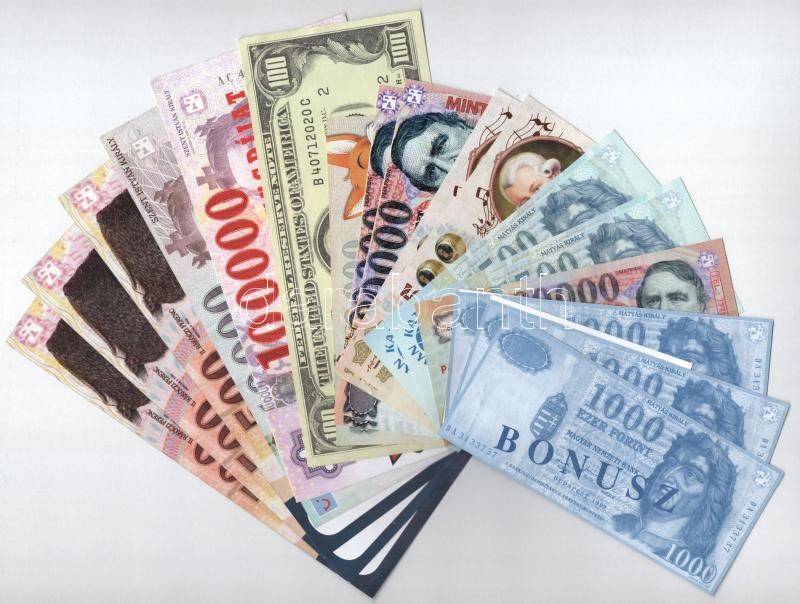 Leírás: 36db-os minibankjegy, utalvány, reklám és bankjegy formájú röplap tétel, két darabhoz gyöngy tűzve T:vegyes