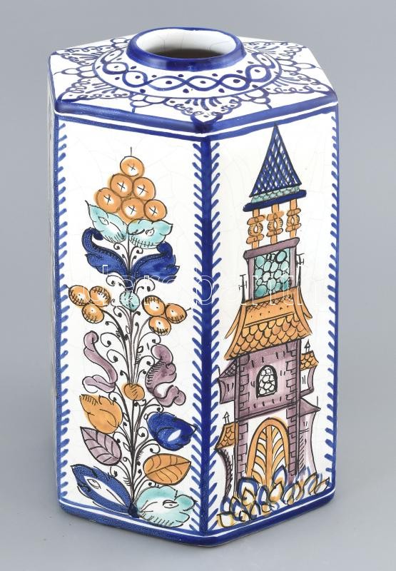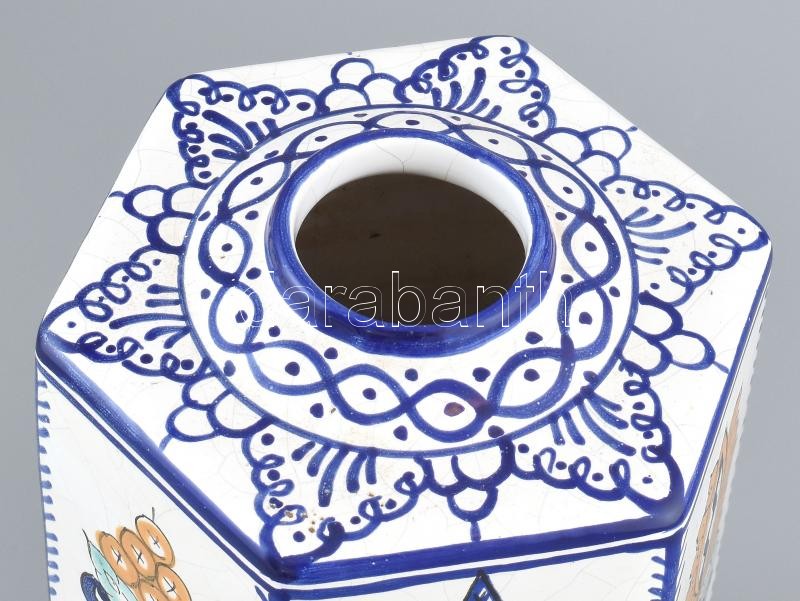 Leírás: Habán múzeumi másolat edény. Kézzel festett, jelzett, hibátlan. 26 cm