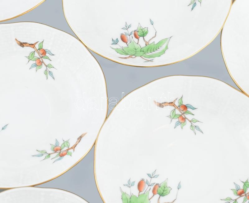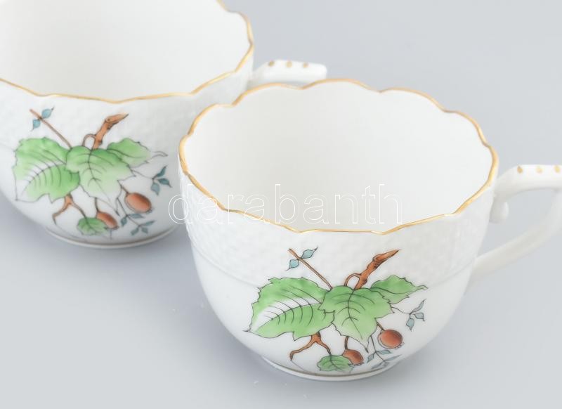 Leírás: Herendi csipkebogyó mintás mokkás készlet. 6 személyes, kézzel festett, jelzett, hibátlan.