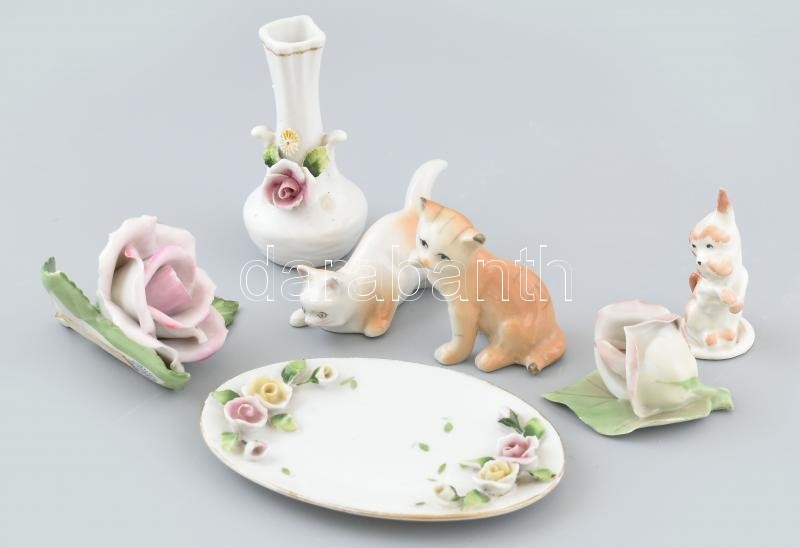Leírás: Vegyes porcelán tétel, rózsa meg állatkák, részben jelzett, m: 4-9 cm, kopásokkal