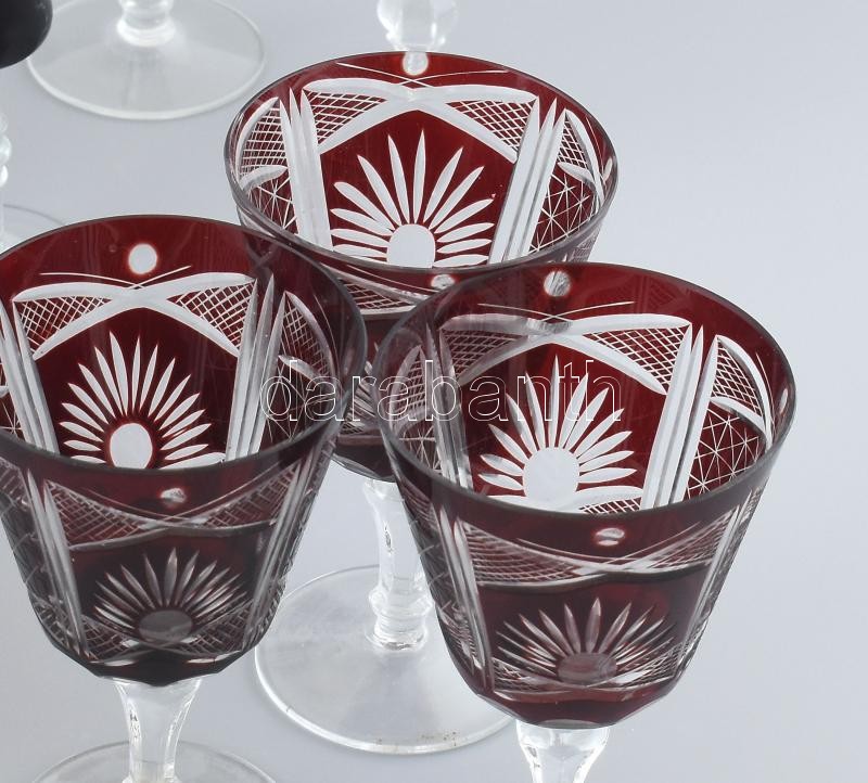 20 db vegyes bordó kristály pohár, szép állapotban. https://www.darabanth.com/hu/427-Gyorsarveres/427.0/Porcelan-keramia-uveg/Uvegtargyak~500008/20-db-vegyes-bordo-kristaly-pohar-szep-allapotban~II2725364