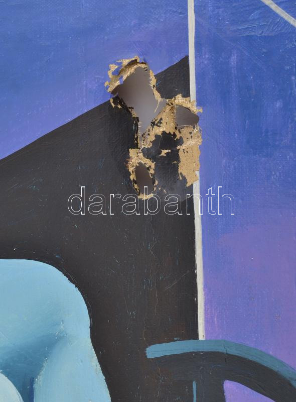 Leírás: Farkas József (?-): Klasszikum (Szürrealista kép). Olaj, vászon. Jelzett. Sérült. Fakeretben. 64x60 cm
