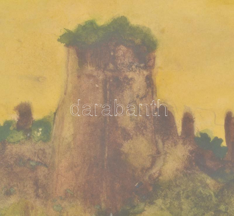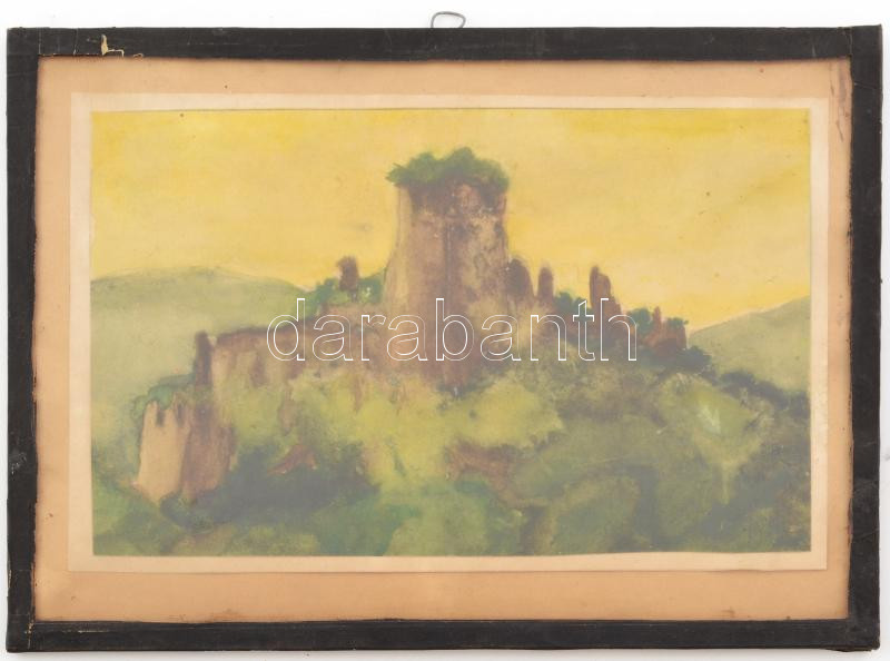 Leírás: Nyáregyházi báró Nyáry Pál (?-?): Makovica vára (Zboró).. Akvarell, papír. Jelzett. Üveg mögött. 12,5x19,5 cm / Nyáregyházi baron Pál Nyáry: Ruins of castle Makovica (Zborov). Watercolour on paper, signed, behind glass.