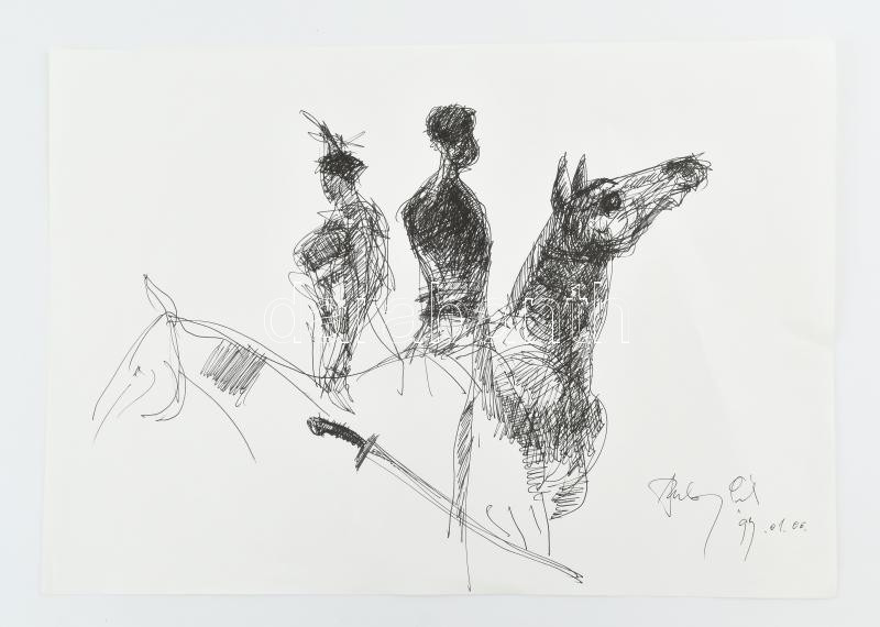 Szalay Pál (1953-2015): Lovasok (tanulmányrajz). Tus, papír. Jelzett. ... https://www.darabanth.com/hu/428-Gyorsarveres/428.0/Festmenyek-es-grafikak/Festmenyek-es-grafikak~500001/Szalay-Pal-1953-2015-Lovasok-tanulmanyrajz-Tus-papir-Jelzett-29-5x42-cm~II2738311