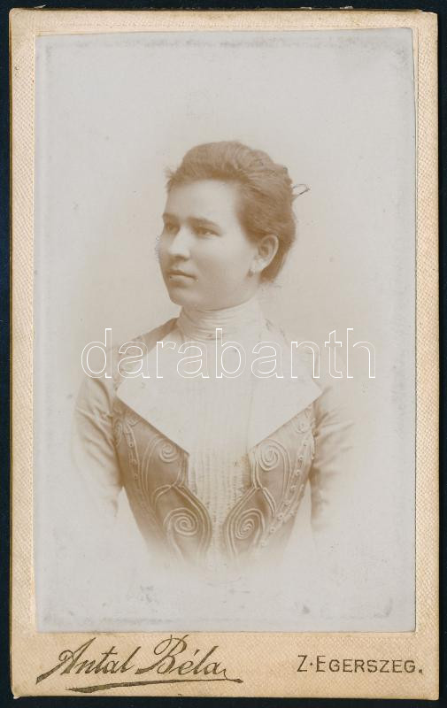 cca 1900 Női portré, keményhátú fotó Antal Béla zalaegerszegi műterméb... https://www.darabanth.com/hu/428-Gyorsarveres/428.0/Fotomuveszet/Foto~500021/cca-1900-Noi-portre-kemenyhatu-foto-Antal-Bela-zalaegerszegi-mutermebol-10-5C3976-5-cm~II2739239