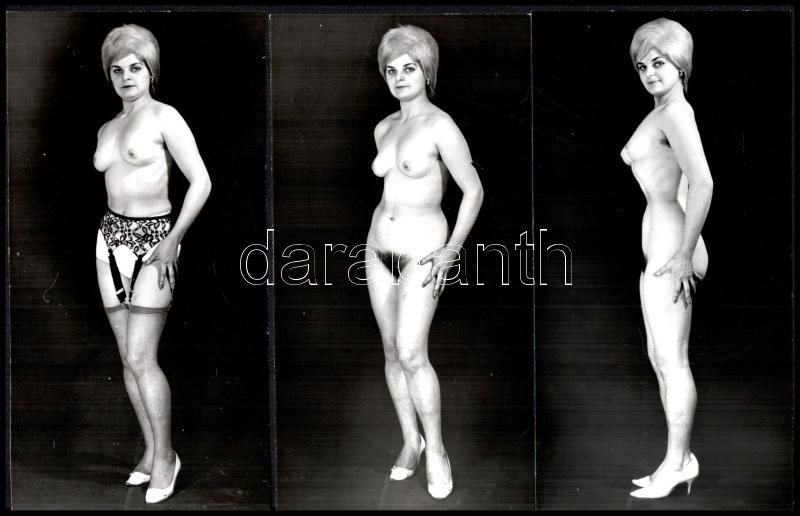Leírás: cca 1972 Női dimenziók, szolidan erotikus felvételek, 3 db vintage fotó, ezüst zselatinos fotópapíron, 15x8 cm