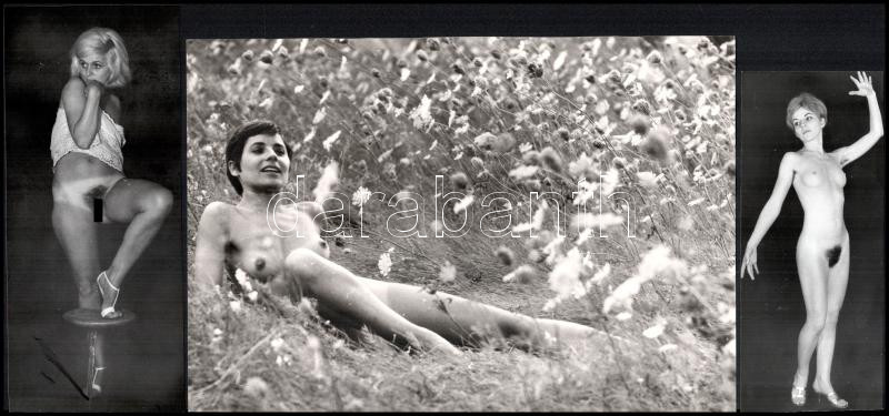 Leírás: cca 1975 Szolidan erotikus felvételek, 3 db vintage fotó, ezüst zselatinos fotópapíron, 16,7x24 cm és15x6,2 cm között