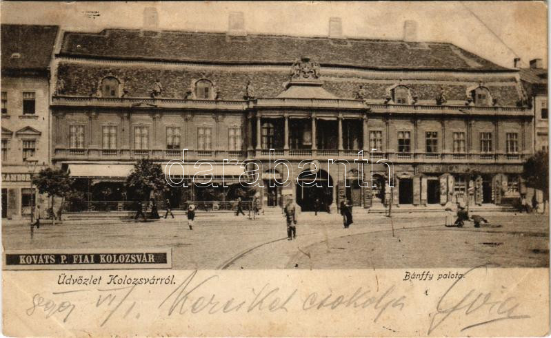 Leírás: 1899 (Vorläufer) Kolozsvár, Cluj; Bánffy palota, Jeney Lajos üzlete. Kováts P. fiai kiadása / palace, shops