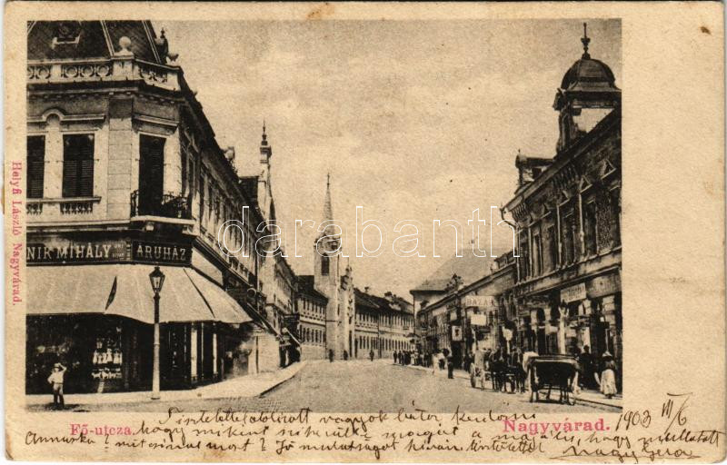 1903 Nagyvárad, Oradea; Fő utca, Leipnik Mihály úri divat áruháza, üzl... https://www.darabanth.com/hu/428-Gyorsarveres/428.0/Kepeslapok/Erdely~1500004/1903-Nagyvarad-Oradea-Fo-utca-Leipnik-Mihaly-uri-divat-aruhaza-uzletek-Helyfi-Laszlo-k~II2745368