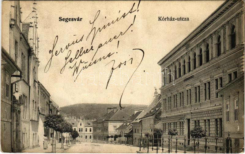 1906 Segesvár, Schässburg, Sighisoara; Kórház utca, Evangélikus iskola... https://www.darabanth.com/hu/428-Gyorsarveres/428.0/Kepeslapok/Erdely~1500004/1906-Segesvar-Schassburg-Sighisoara-Korhaz-utca-Evangelikus-iskola-Zeidner-H-kiadasa-s~II2741186