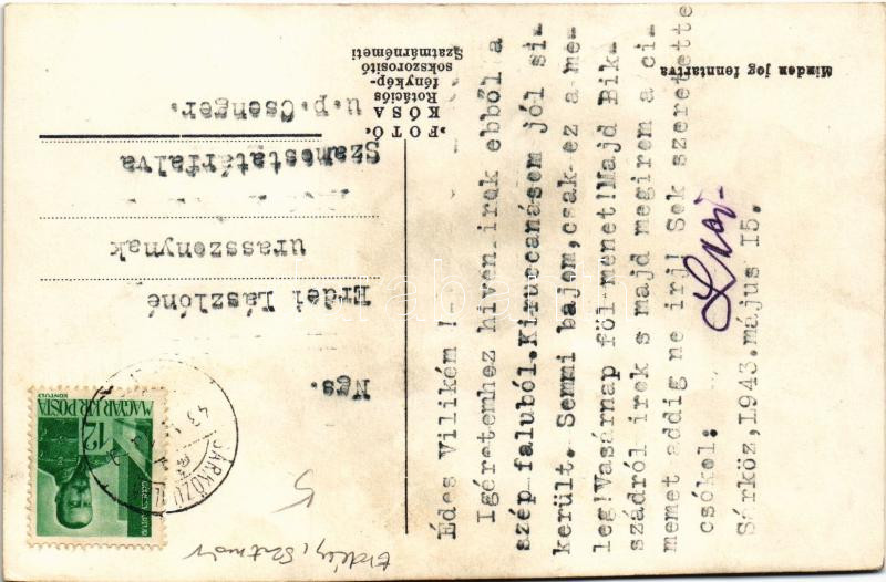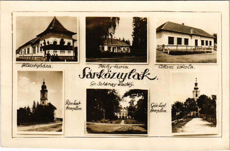 1943 Sárközújlak, Sárköz-Újlak, Sarchiuz, Livada; Községháza, Péchy kúria, Állami iskola, Római katolikus templom, Gróf Sztáray kastély, Görögkatolikus templom / town hall, castles, churches (vágott / cut)