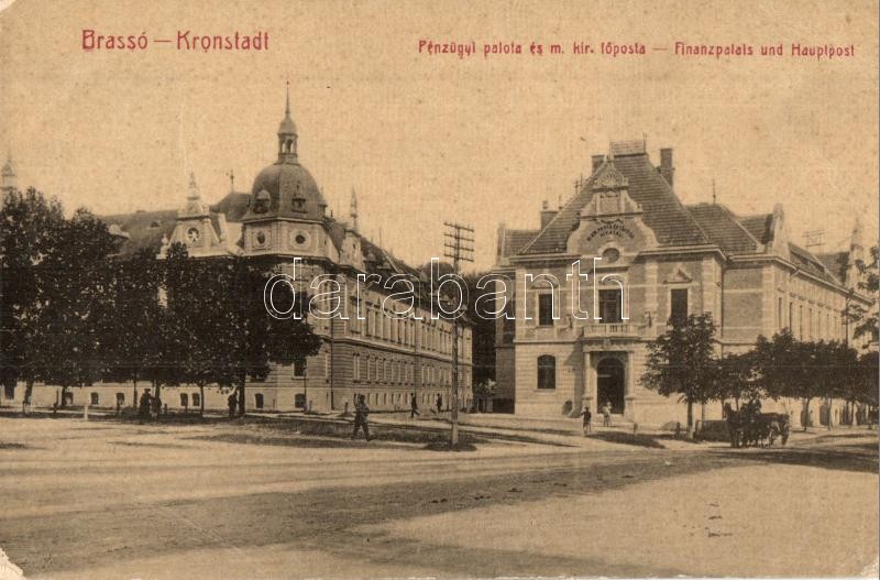 Brassó, Kronstadt, Brasov; Pénzügyi palota és m. kir. posta. No. 105. ... https://www.darabanth.com/hu/428-Gyorsarveres/428.0/Kepeslapok/Erdely~1500004/Brasso-Kronstadt-Brasov-Penzugyi-palota-es-m-kir-posta-No-105-Financial-palace-and-mai~II1768315