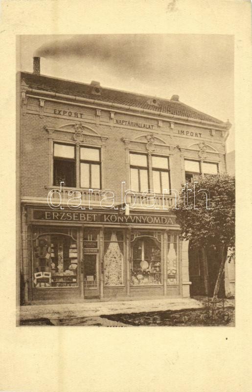 Leírás: Dicsőszentmárton, Tarnaveni, Diciosanmartin; Dosztál Kálmán "Erzsébet" könyvnyomda, Export-Inport Naptárvállalat / book printing shop (vágott / cut)
