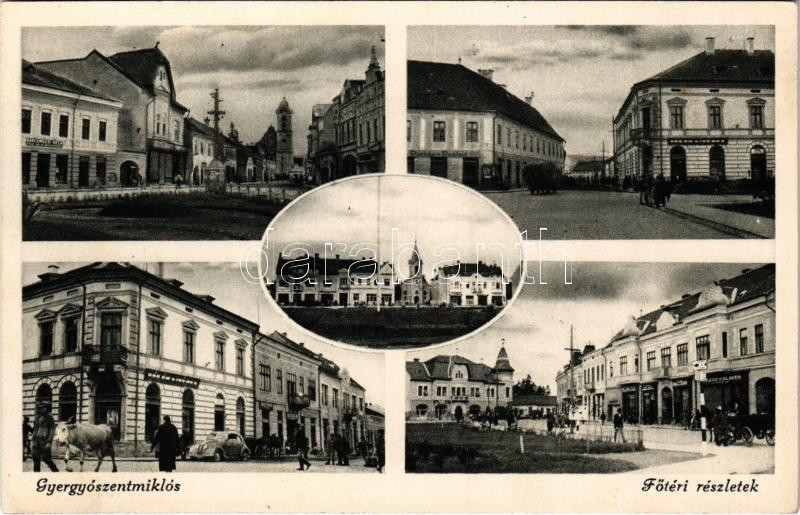 Leírás: Gyergyószentmiklósi-havasok, Muntii Giurgeului; Fő téri részletek, üzletek / main square, shops