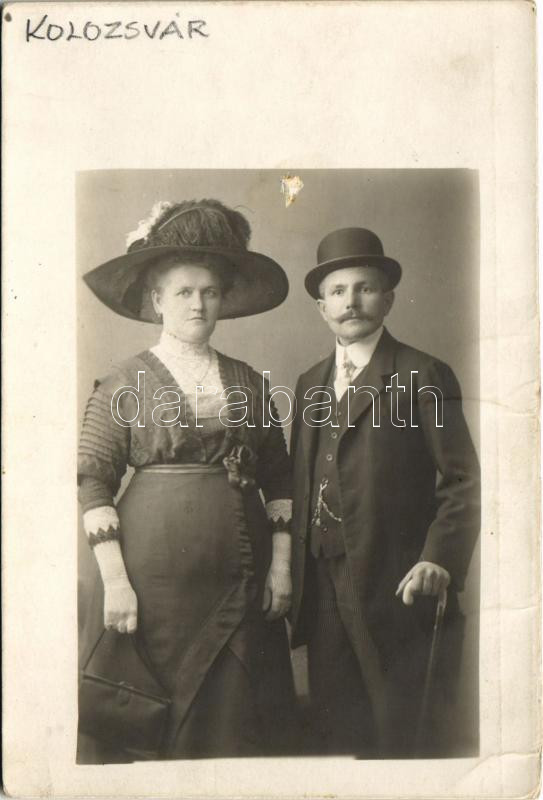 Kolozsvár, Cluj; Házaspár. Budapesti Miniatür Fényképészeti Vállalat, ... https://www.darabanth.com/hu/428-Gyorsarveres/428.0/Kepeslapok/Erdely~1500004/Kolozsvar-Cluj-Hazaspar-Budapesti-Miniatur-Fenykepeszeti-Vallalat-Kolozsvar-Wesseleny~II2744607