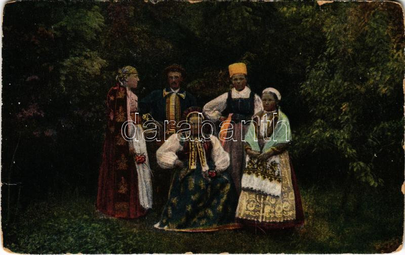 Prázsmár, Tartlau, Prejmer; Prázsmári szász viselet. Vasúti levelezőlapárusítás. Erdélyi udvari fényképész felvétele / Volkstracht der Sachsen / Transylvanian Saxon folklore (kopott sarkak / worn corners)