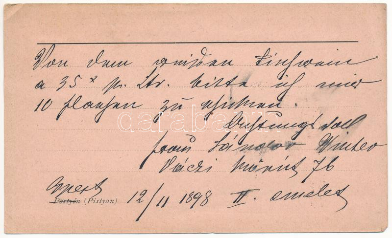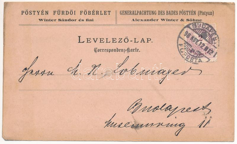 1898 (Vorläufer) Pöstyén, Pistyan, Piestany; Generalpachtung des Bades Pöstyén (Pistyan) Alexander Winter & Söhne / Winter Sándor és fiai Pöstyéni fürdői főbérletének reklámlapja / advertisement card of the owners of the Piestany Baths (EB)
